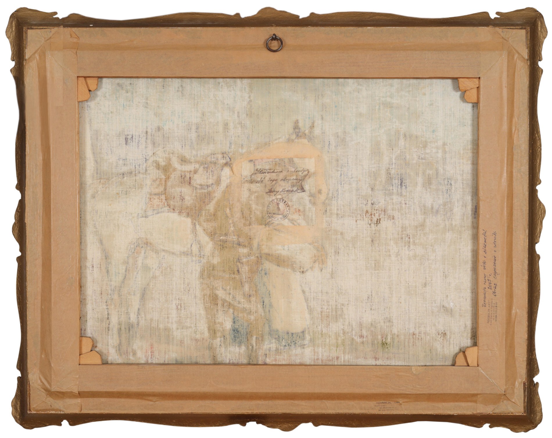On the reverse: stamp of Jerzy Kossak with the coat of arms of the Kossak family and artist's stamp with confirmation of the painting's authenticity.
