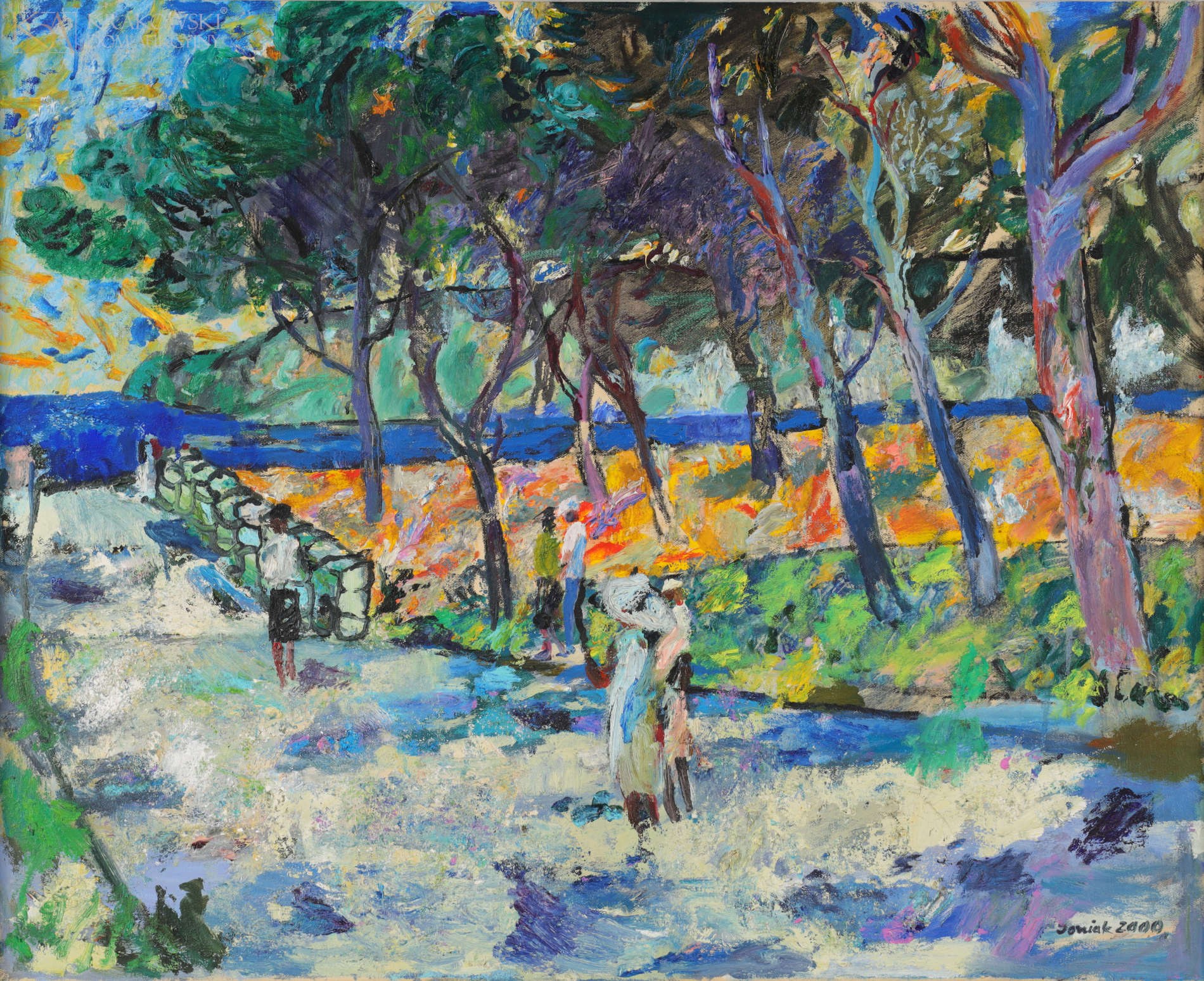 Opisany na odwrocie: "JULIUSZ JONIAK | Pinie w Cadaques’2000 | 75 x 92 | 2000"