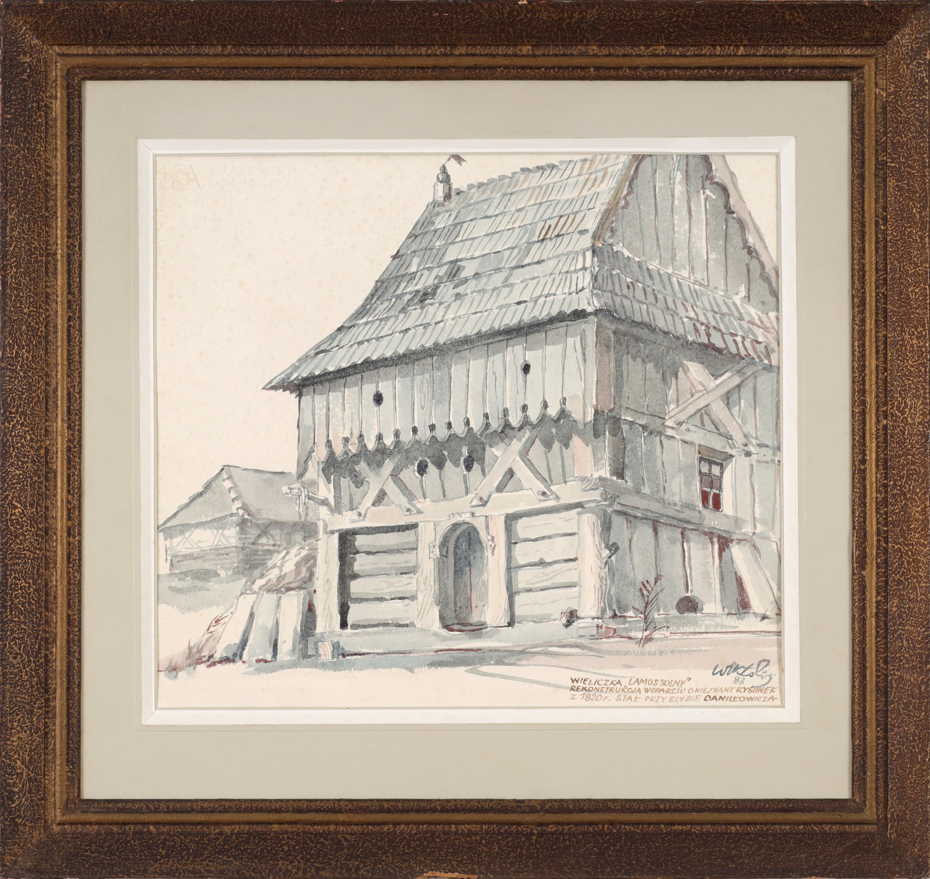 Opisany p.d.: "WIELICZKA LAMUS SOLNY | REKONSTRUKCJA W OPARCIU O NIEZNANY RYSUNEK | Z 1820 r. STAŁ PRZY SZYBIE DANIŁŁÓWICZA"
